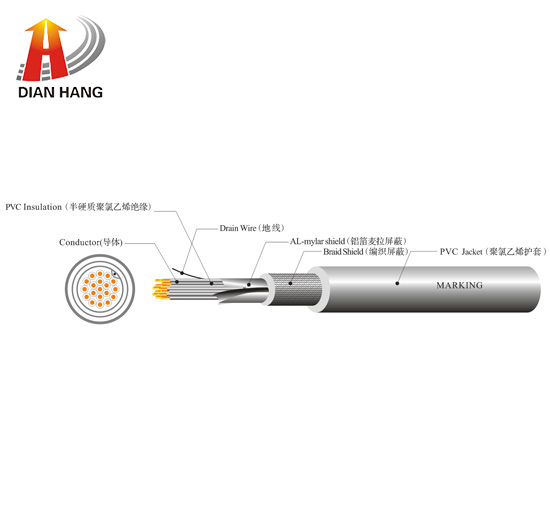 額定溫度:105℃ 額定電壓:300V 參考標(biāo)準(zhǔn):UL758,UL1581,CSA C22.2No.210.2 導(dǎo)體使用單支或絞合32~16AWG 鍍錫或裸銅 PVC 絕緣,符合ROHS、REACH 環(huán)保標(biāo)準(zhǔn) 鍍錫或裸銅編織屏蔽 PVC 護套,符合ROHS、REACH環(huán)保標(biāo)準(zhǔn) 通過UL VW-1、CSA FT1 及JQA F-Mark 阻燃測試 使用標(biāo)準(zhǔn)絕緣厚度、易裁線、易剝皮